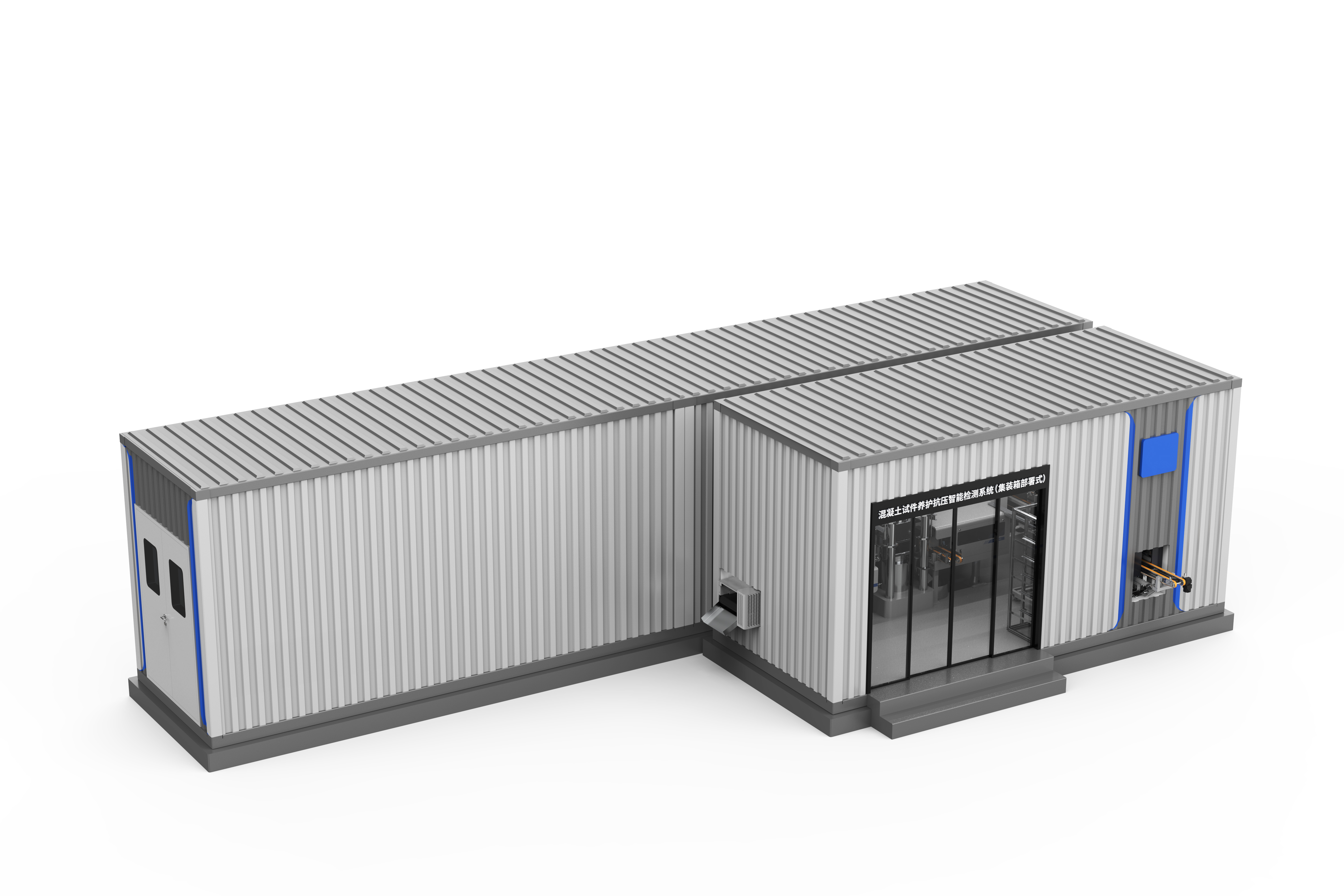 集装箱检测系统集装箱撬装式混凝土试件养护&抗压一体化智能检测系统主要解决现有的养护抗压系统不能跟随建筑工地进行移动,存在检测单位距离建筑工地较远的情况,导致混凝土试件运输成本上升和拖慢公路建造的工期等问题,提供了一种集装箱撬装式混凝土试件养护&抗压一体化智能系统,其集成度高、有效降低混凝土试件检测运输成本和提高建造效率。
