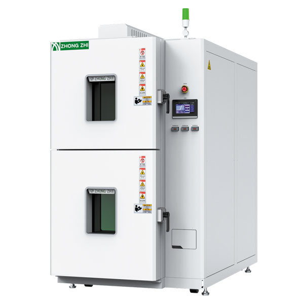 冷热冲击试验箱冷热冲击试验箱为三箱式和两箱式。三箱式分为蓄冷室,蓄热室和试验室, 产品在测试时是静态。两箱式分为高温室和低温室,是通过电机带动提篮运 动来实现高低温的切换,产品测试为动态。 -