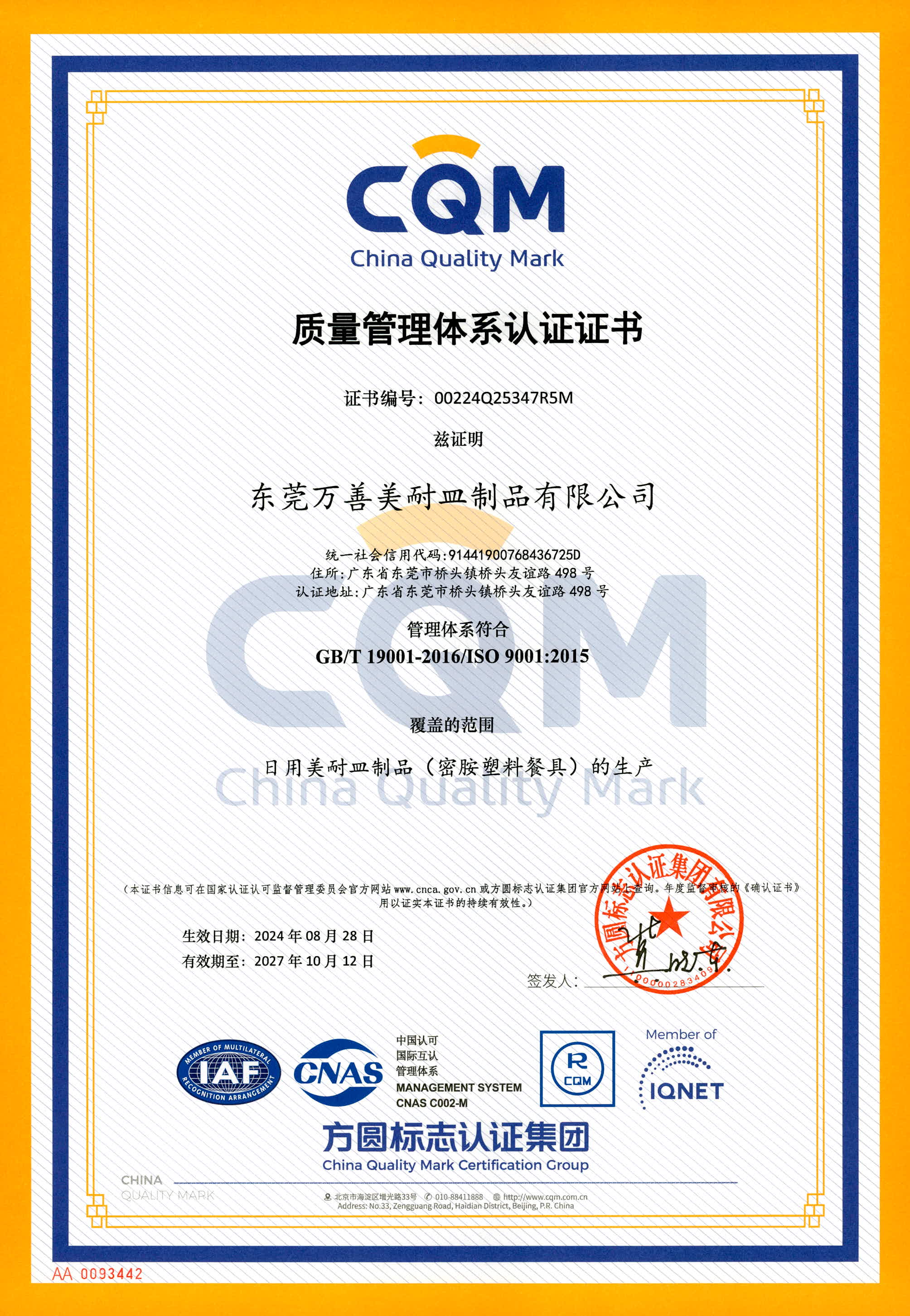 - 公司名称: 东莞万善美耐皿制品有限公司